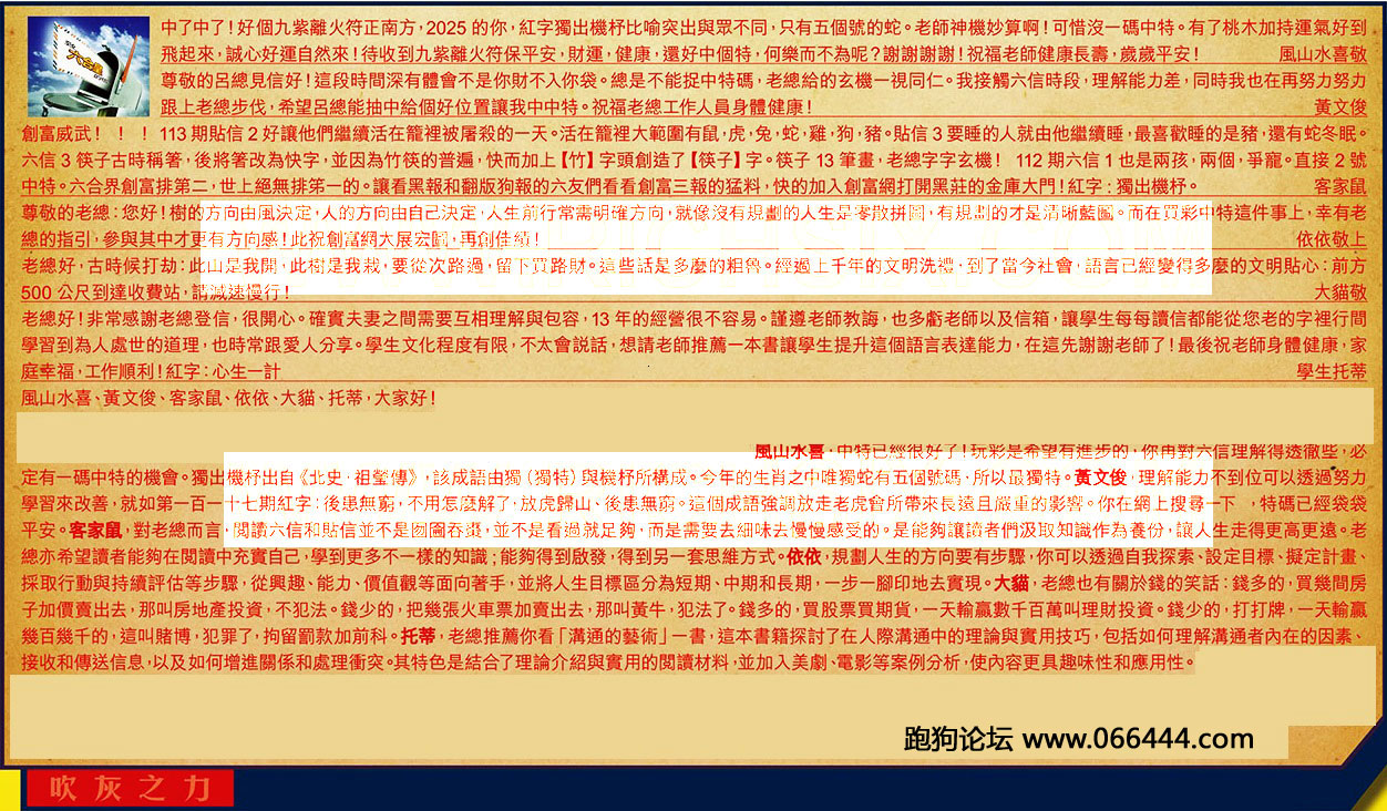 【4】.老總見信好,習慣性每天次開完彩去信給你:特別是去信的第二天,總希望報中有自己席之地,每當期望的越大,失望也越大,當然老總也不可能兼顧所有讀者,誰來信訴苦什麼的,就要登他的信。今晚這個和49號失驚無神又蹦出來,真是丈二和尚摸不到頭。輪得已經找不到方向了,這樣下去如何是號?請老總上座為學生指點指點,感謝老總。祝貴報越辦越好,老總辛苦了! 黄文俊