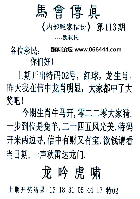 113期:平特一肖 |